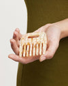 A compact wide-tooth comb handmade from fine Italian acetate.