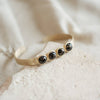 Solid brass, adjustable cuff with 4, 8mm bezel set copper obsidian stones. All soldered and set by hand.
