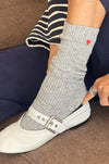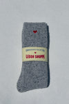 A cold-weather staple with a touch of charm. Made from an ultra-warm wool blend with the same fit and feel as our Snow Socks, and finished with a tiny embroidered heart for just the right hint of cozy and cute. Wear them long or scrunched for that perfectly lived-in feel.
