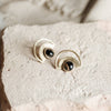 8mm bezel set copper obsidian pieces sit on 20mm solid brass crescents with an intentional patina.